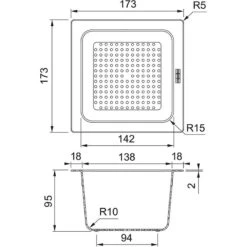 - PP Bowl Dimensions: 173 x 173 x 95mm