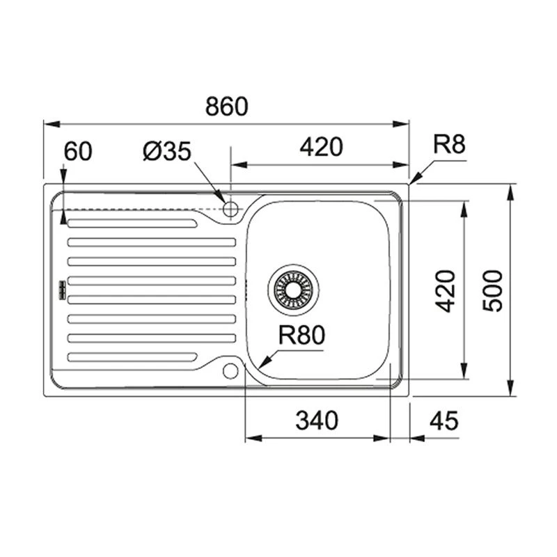 Franke Antea 1 Bowl Inset Kitchen Sink Reversible AZN 611-86 – Stainless Steel – 101.0489.523 Details