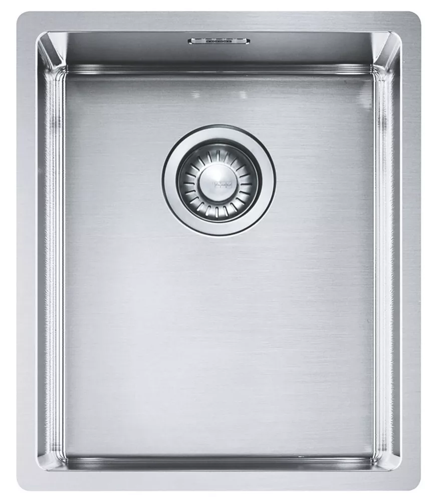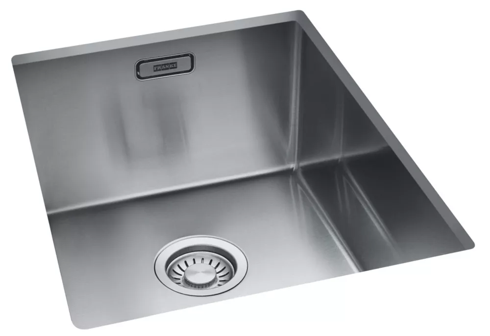 Stylish, undermounted stainless steel sink featuring square edges for a contemporary look.