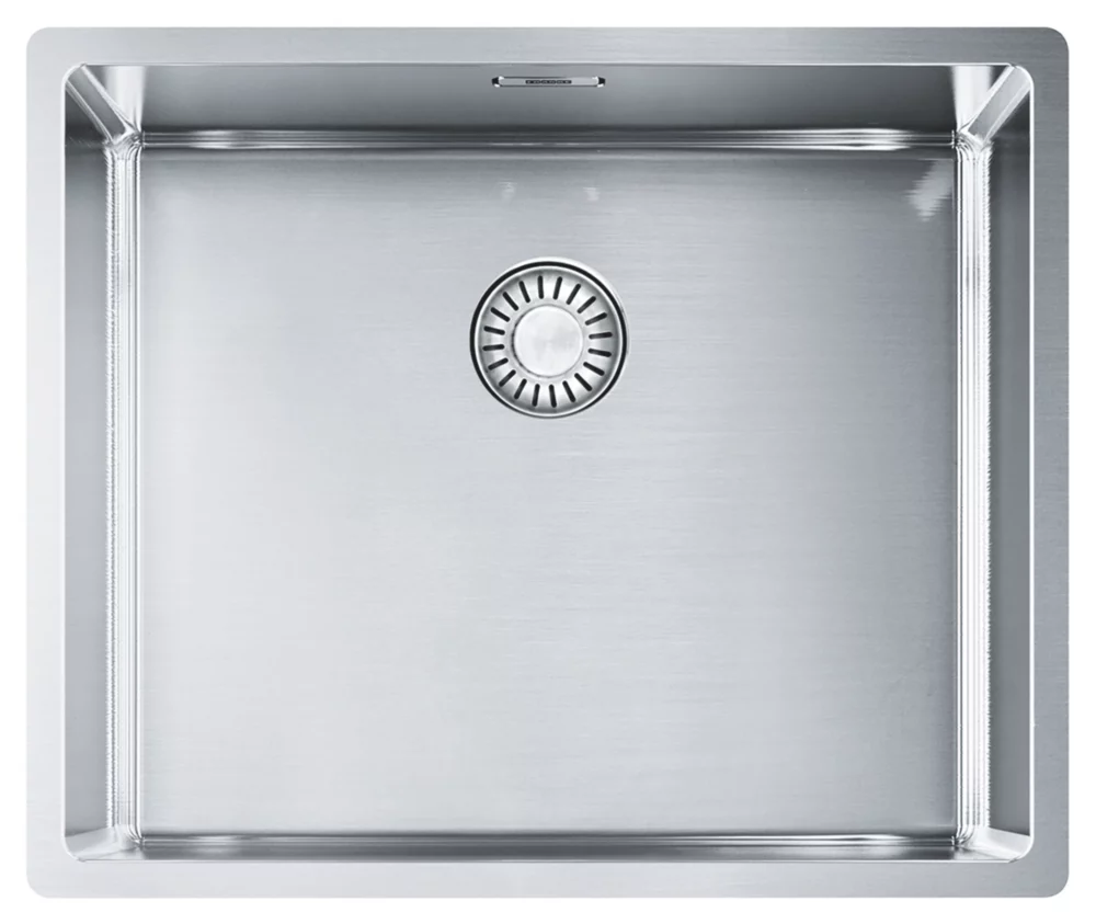 Stylish, undermounted stainless steel sink featuring square edges for a contemporary look.