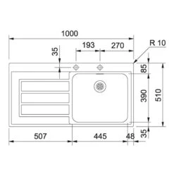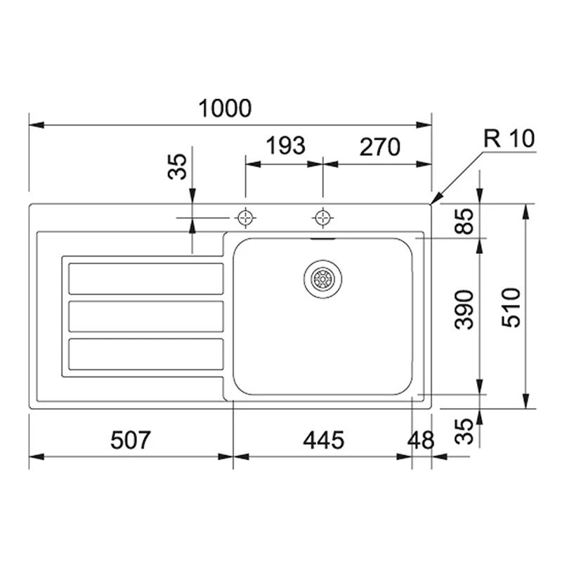Franke Epos 1 Bowl Inset Kitchen Sink with Left Hand Drainer EOX 611-100 – Stainless Steel – 101.0381.857 Details