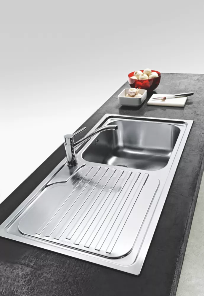 Stainless steel construction. Combines Italian design with practicality; its extra large bowl is ideal for accommodating larger kitchenware.