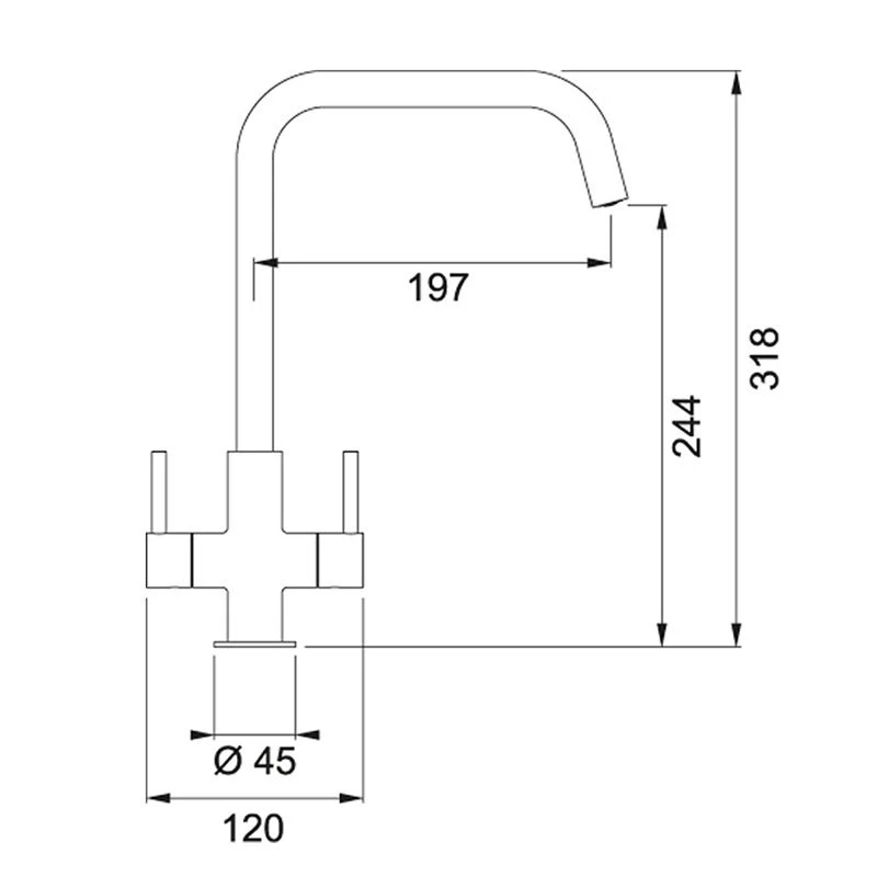 The Franke Hestia U spout kitchen tap boasts a classic design featuring an easily identifiable twin lever handles to operate hot and cold flow. It is also fitted with hard-wearing ceramic discs and suitable for high-pressure water systems. Built to last, the mixer tap is backed by 5 years guarantee from manufacturer for a peace of mind.