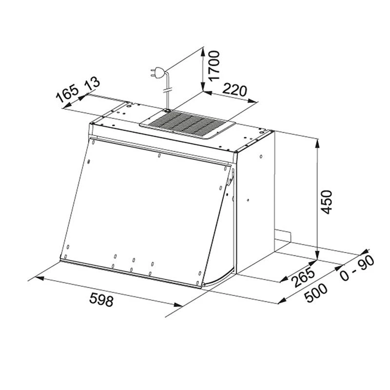 - Outlet tube diameter: 150mm (if a reduction is used the efficency of the hood is reduced)