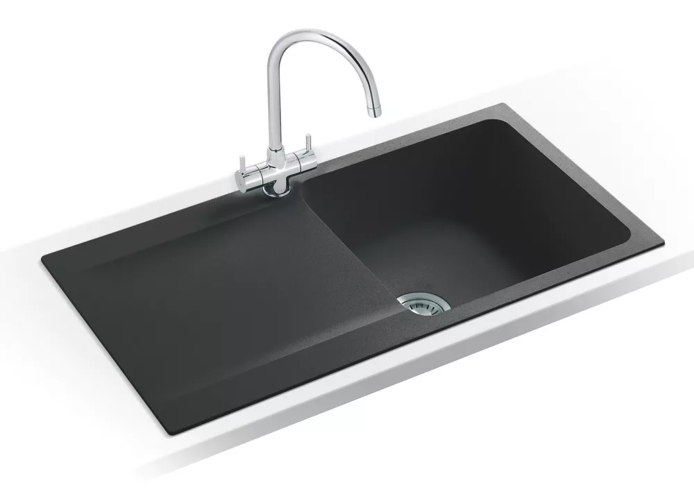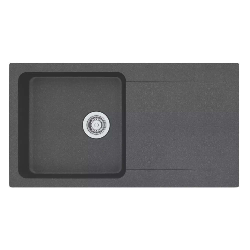 Modern, minimalist design. Constructed from Tectonite composite material with a durable, hardwearing coating. The tap hole can be drilled out either side of the sink for left or right hand drainer.