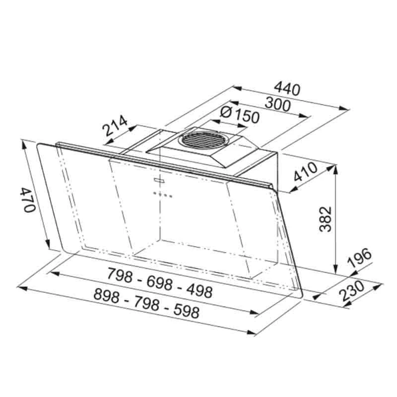 - Recommended positioning height above hob: 450 mm