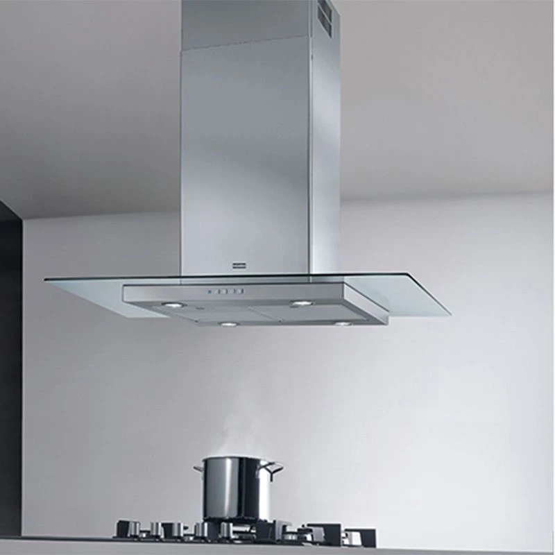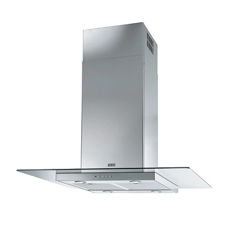 The Franke T Glass Linear 90cm Island cooker hood has a classic design with stainless steel body and a glass island hood.