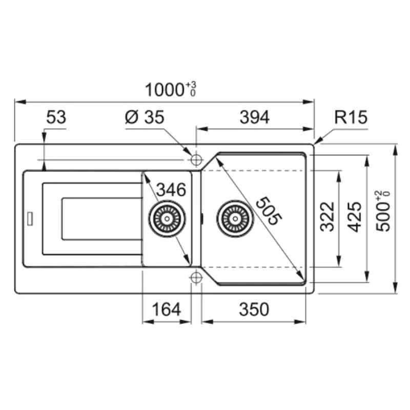 Franke Urban 1.5 Bowls Inset Fragranite Kitchen Sink Reversible UBG 651 – Matt Black & Colourline Waste – 114.0689.390